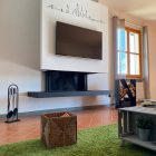 Le soluzioni dotate di portine in vetro a saliscendi sono realizzate “su misura” in base ai reali spazi disponibili. I camini con il vetro possono avere le misure richieste dal cliente, sia in larghezza che in profondità; inoltre, possono essere realizzati “sospesi” per un’estetica ancora più particolare.